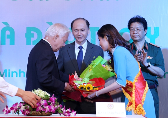 GSTSKH Phạm Mạnh Hùng tặng hoa cho Thứ trưởng Bộ Y tế Lê Quang Cường