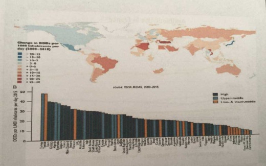 Trong bài tham luận vô cùng công phu của mình, BS Malkin đã chỉ rõ tỉ lệ bác sĩ kê đơn và sử dụng kháng sinh thuộc nhóm nước cao nhất thế giới trên bản đồ Sử dụng kháng sinh năm 2015 của công ty IMS Health (Công ty cung cấp dữ liệu dược phẩm - Ảnh trên).