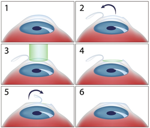 Phương pháp này nhằm bóc bỏ 5 đến 6 lớp tế bào biểu mô rất mỏng trên bề mặt của giác mạc (tròng đen). Sau đó bác sĩ dùng laser excimer để làm bay hơi từng lớp mô vùng trung tâm. Giác mạc sẽ mỏng và dẹt giúp giảm công suất quang học, cải thiện thị lực.