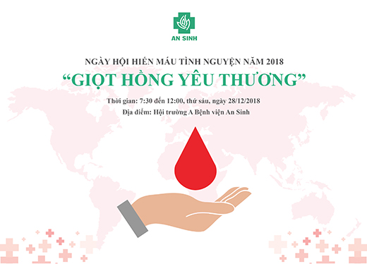 Ngày hội hiến máu tình nguyện năm 2018 sẽ được tổ chức bắt đầu vào lúc 7:30 giờ, ngày mai, 28/12/2019 tại Hội trường A Bệnh viện An Sinh. Đơn vị tiếp nhận là Bệnh viện Truyền máu huyết học Tp. Hồ Chí Minh
