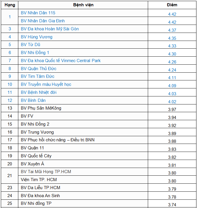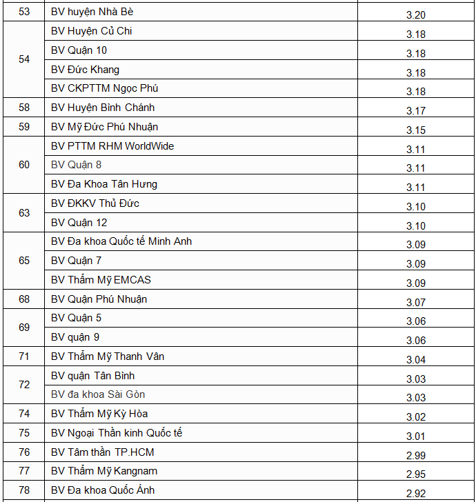 Tổng số bệnh viện được Sở Y tế đánh giá chất lượng là 102 bệnh viện, bao gồm 30 bệnh viện thành phố; 23 bệnh viện quận, huyện; 47 bệnh viện tư nhân. Riêng 2 bệnh viện Y học cổ truyền và Viện Y dược học dân tộc đăng ký đánh giá bằng hình thức kiểm tra chéo giữa các bệnh viện chuyên khoa y học cổ truyền của các tỉnh; bệnh viện Quận 3 xin được không đánh giá chất lượng vì năm 2018 bệnh viện tạm di dời để xây dựng và củng cố lại hoạt động bệnh viện. Không còn bệnh viện ở mức chất lượng kém và 12 bệnh viện đạt mức chất lượng tốt là điều đáng ghi nhận của năm 2018.