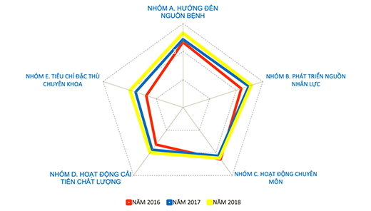 Các bệnh viện đã có nhiều nỗ lực, phấn đấu cải tiến chất lượng nhằm đạt các tiêu chí do Bộ Y tế ban hành. Nếu như năm 2017 có 62 đơn vị đạt điểm trung bình trên 3, thì đến năm 2018 đã có 77 bệnh viện đạt điểm trung bình từ 3 trở lên, chiếm tỷ lệ 66%. Số lượng tiêu chí ở mức 1 của các bệnh viện giảm rõ rệt, trong khi số lượng tiêu chí đạt mức 5 tăng đáng kể. Phần lớn các bệnh viện đã chủ động phân bổ nguồn lực và triển khai nhiều hoạt động, nhiều giải pháp sáng tạo, cải tiến chất lượng trong nhiều lĩnh vực hoạt động của bệnh viện với mục tiêu lấy người bệnh làm trung tâm phục vụ.