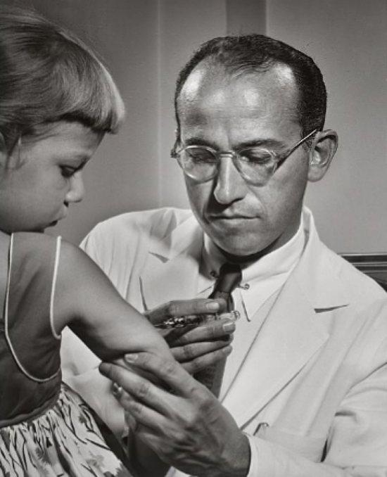 Nhà khoa học Jonas Salk tiêm vắcxin cho trẻ
