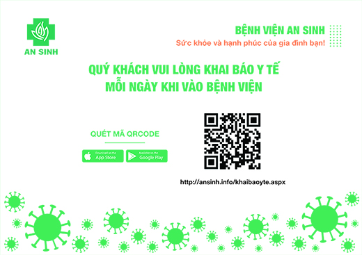 Bệnh viện An Sinh triển khai thực hiện khai báo y tế bằng QR Code và Online với mong muốn tạo điều thuận lợi, đảm bảo an toàn sức khỏe, tâm lý thoải mái, tối ưu thời gian khi bạn đến Bệnh viện An Sinh khám bệnh, chăm sóc sức khỏe, liên hệ công việc... mà vẫn thực hiện nghiêm túc việc khai báo y tế mỗi ngày khi vào bệnh viện và giãn cách an toàn theo khuyến cáo.