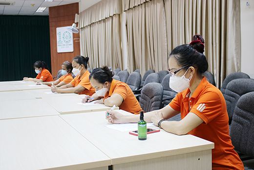 Tại buổi tập huấn An toàn vệ sinh thực phẩm năm 2021, nhân viên Căn tin được thực hiện một bài kiểm tra gồm có 30 câu hỏi trắc nghiệm để đánh giá kiến thức và năng lực chuyên môn, đặc biệt trong thực hành tốt vệ sinh an toàn thực phẩm.