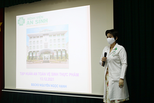 Chiều ngày 13/12/2021, Bệnh viện An Sinh tổ chức tập huấn kiến thức An toàn vệ sinh thực phẩm năm 2021 cho nhân viên Căn tin bệnh viện tại Hội trường 4A với sự hướng dẫn của BS CKII Nguyễn Ngọc Hạnh, Trưởng khoa Dinh dưỡng và Tiết chế. Đây cũng là một trong những hoạt động được bệnh viện tổ chức theo đình kỳ mỗi năm một lần.