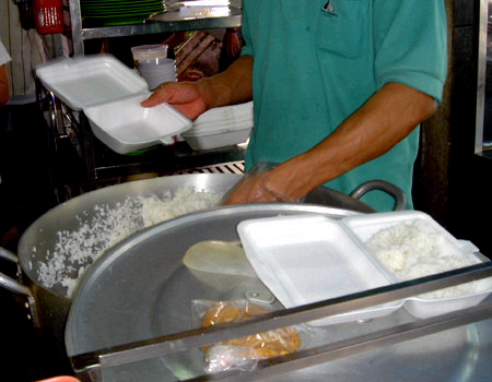 | Hộp xốp đựng cơm bán phổ biến ở chợ Bình Tây, TP HCM, được nhiều người ưa chuộng để đựng cơm, thức ăn vì sự tiện lợi. Ảnh: T.C. |