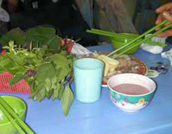 "Cho đến nay, chúng tôi chỉ tạm nghi phẩy khuẩn tả khởi phát từ thức ăn do có hai người bệnh cùng dùng chung một món ăn. Tuy nhiên đây lại là hàng rong nên không còn mẫu để xét nghiệm", một bác sĩ nói.