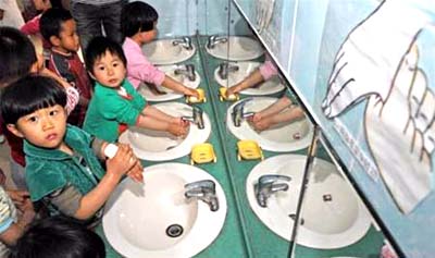 Trong khi thực tế ở Việt Nam, phần lớn người dân sống trong vùng nông thôn không có thói quen rửa tay bằng xà phòng vào những thời điểm cần thiết như trước khi ăn, sau khi đi vệ sinh hoặc tiếp xúc với phân trẻ em.