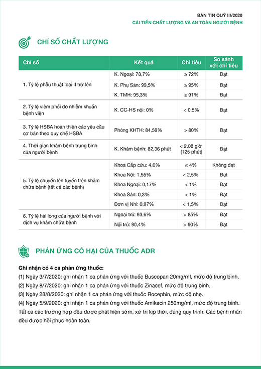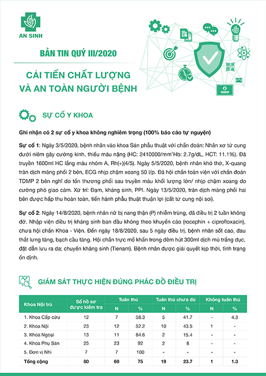 BẢN TIN CẢI TIẾN CHẤT LƯỢNG VÀ AN TOÀN NGƯỜI BỆNH QUÝ III/2020
