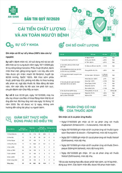 BẢN TIN "CẢI TIẾN CHẤT LƯỢNG VÀ AN TOÀN NGƯỜI BỆNH QUÝ IV NĂM 2020