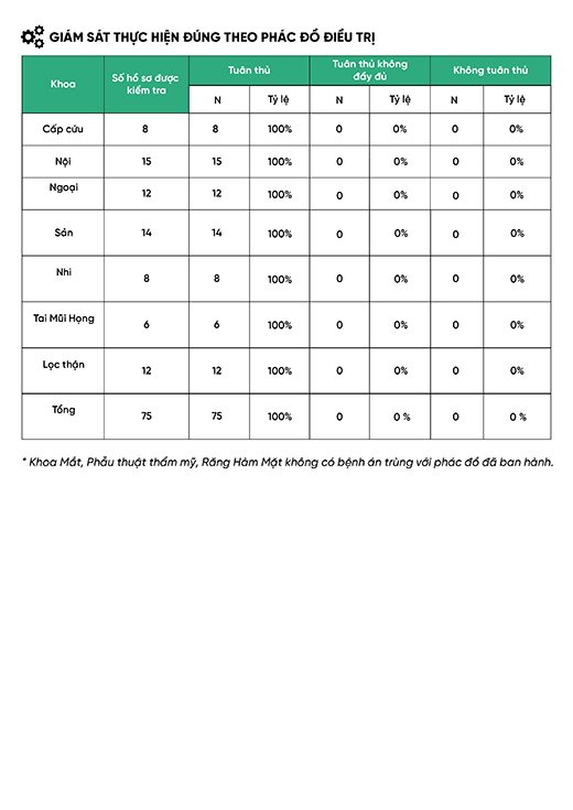 * Khoa Mắt, Phẫu thuật thẩm mỹ, Răng Hàm Mặt không có bệnh án trùng với phác đồ đã ban hành