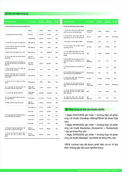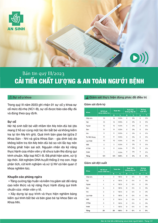 Bản tin cải tiến chất lượng và an toàn người bệnh quý III.2023