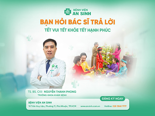 Trong chuyên mục “Bạn hỏi Bác sĩ trả lời” với chủ đề “Tết vui Tết khỏe Tết hạnh phúc”, Tiến sĩ Bác sĩ CKII Nguyễn Thanh Phong, Trưởng khoa Khám bệnh Bệnh viện An Sinh chia sẻ với bạn một vài điều đơn giản trước thềm năm mới để luôn duy trì một cơ thể khỏe mạnh và một cuộc sống hạnh phúc dài lâu.