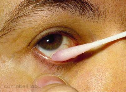 Hình 4: Lấy dịch xuất tiết kết mạc để xét nghiệm.