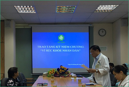 Ban Giám đốc đã trao tặng kỷ nhiệm chương và quà cho 9 nhân viên y tế được nhận kỷ niệm chương và ghi nhận những đóng góp của các bác sĩ, dược sĩ, điều dưỡng, kỹ thuật viên của Bệnh viện, đã đồng hành cùng Bệnh viện trong thời gian qua. Cán bộ nhân viên nhận kỷ niệm chương “Vì sức khỏe nhân dân” hôm nay, tuy mỗi người một vị trí công việc khác nhau nhưng đều cố gắng hết sức mình trong công tác điều trị, bảo vệ, chăm sóc sức khỏe nhân dân. Ban Giám đốc Bệnh viện chúc mừng các anh, các chị đồng nghiệp, chúc sức khỏe và hạnh phúc.