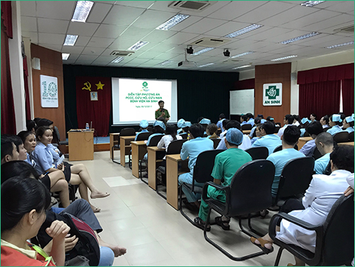 Ngày 6 và 7/12/2017, Bệnh viện An Sinh phối hợp với Phòng Cảnh sát PCCC Quận Bình Thạnh, UBND Phường 12, Công an Phường 12 tổ chức diễn tập phương án chữa cháy, cứu hộ, cứu nạn năm 2017 cho toàn thể cán bộ nhân viên Bệnh viện nhằm nâng cao nhận thức, vai trò và trách nhiệm về công tác PCCC, cứu hộ, cứu nạn cho mỗi cán bộ và nhân viên Bệnh viện An Sinh.