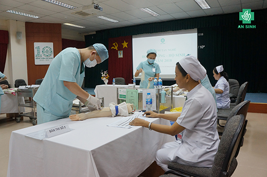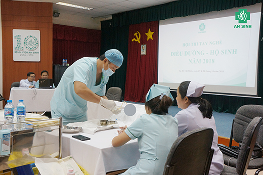 Trong 4 ngày, 26 và 27/10, 2 và 3/11/2018, Hội thi tay nghề Điều dưỡng – Hộ sinh năm 2018 được tổ chức tại Hội trường A Bệnh viện An Sinh. Hội thi tay nghề được tổ chức theo định kỳ mỗi năm một lần. Đây là dịp để các điều dưỡng, hộ sinh và kỹ thuật viên tự kiểm tra và tích lũy thêm kiến thức chuyên môn lẫn kỹ năng thực hành, nâng cao chất lượng dịch vụ trong công tác chăm sóc người bệnh toàn diện.