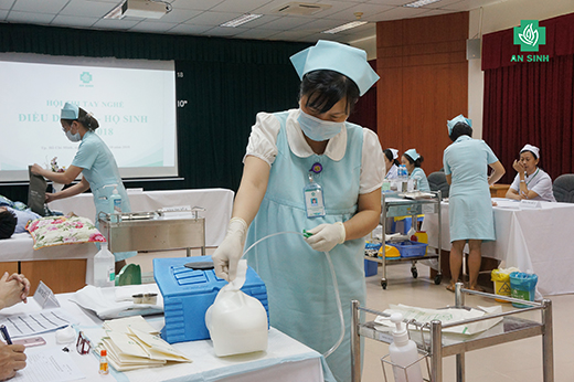 Hội thi tay nghề điều dưỡng – hộ sinh của Bệnh viện An Sinh gồm hai phần thi chính là lý thuyết tổng hợp và kỹ năng thực hành.