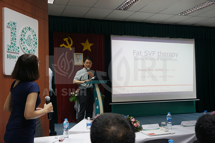 Bác sĩ Kasey Kisu Sung có bề dày kinh nghiệm nghiên cứu và điều trị cho nhiều bệnh nhân và đạt nhiều thành tựu đáng ghi nhận trong lĩnh vực tế bào gốc mô mỡ tự thân tại nhiều quốc gia trong khu vực Đông Nam Á và thế giới. Tại buổi hội thảo, Bác sĩ Kasey trình bày lý thuyết tổng quan về tế bào gốc mô mỡ và chia sẻ nhiều kinh nghiệm quý báu của riêng ông được đúc kết trong suốt quá trình nghiên cứu và phát triển sự nghiệp của mình, đặc biệt là ứng dụng tế bào gốc mô mỡ tự thân trong điều trị và thẩm mỹ.