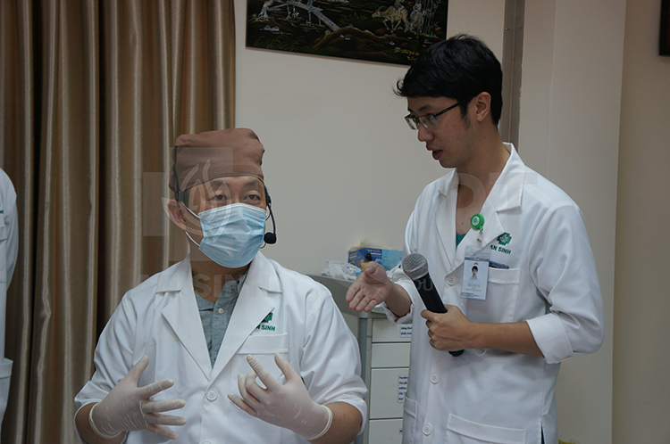 Trong buổi hội thảo, Bác sĩ Kasey Kisu Sung đã trình diễn kỹ thuật tiêm tế bào gốc phân lập từ mô mỡ tự thân trực tiếp trên người bệnh để điều trị thoái hóa khớp gối và trẻ hóa da mặt, cũng phục hồi các cơ quan tổn thương bên trong cơ thể.