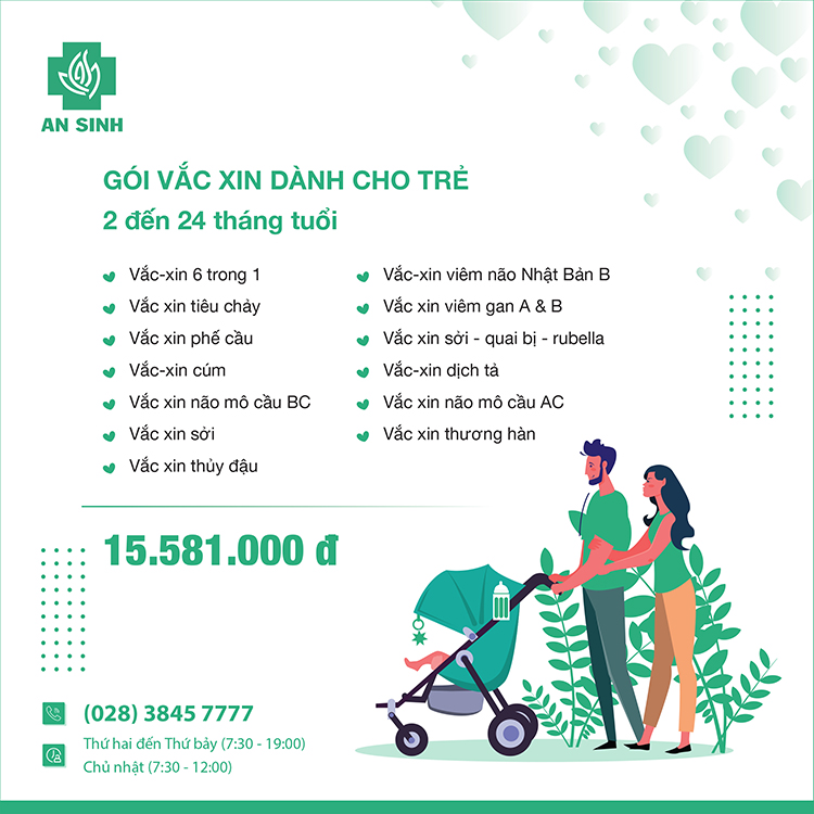 Để đảm bảo cho trẻ được chích ngừa vắc xin đầy đủ và đúng lịch, ba mẹ yên tâm và dành thời gian nhiều hơn trong việc chăm sóc và vui chơi cùng con. Bệnh viện An Sinh triển khai 3 gói vắc xin dành cho trẻ: