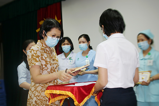 ThS Trần Thị Thanh Mai, Phó Giám đốc Bệnh viện An Sinh trao tặng kỷ niệm chương và bằng khen cho cán bộ nhân viên bệnh viện