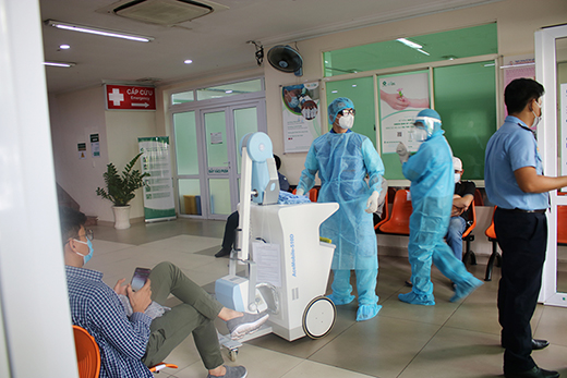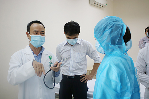Buổi diễn tập được diễn ra với các tình huống giả định được bắt đầu từ điểm tiếp nhận ban đầu ngay tại cổng sàng lọc bệnh viện, tiếp đến là các khoa phòng có tiếp nhận khám và điều trị cho người bệnh ngoại trú và nội trú.