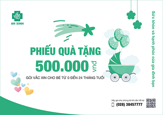 Bệnh viện An Sinh triển khai chương trình “PHIẾU QUÀ TẶNG" dành cho gói vắc xin có trị giá lên đến 500.000 đồng khi bố mẹ mua 1 trong 2 gói vắc xin cho trẻ từ 0 đến 24 tháng tuổi