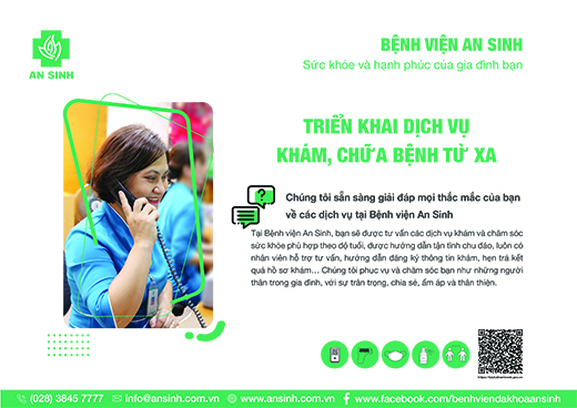 1. Do tình hình dịch Covid-19 diễn biến phức tạp, Bệnh viện An Sinh triển khai dịch vụ khám, tư vấn từ xa cho bệnh nhân không thể đến khám, chữa bệnh trực tiếp tại bệnh viện. Đảm bảo thực hiện biện pháp giãn cách xã hội phòng chống dịch bệnh, giảm tập trung đông người tại bệnh viện, giảm số lượng người phải đến bệnh viện khám bệnh, chữa bệnh. Giảm chi phí khám, chữa bệnh cho người bệnh.