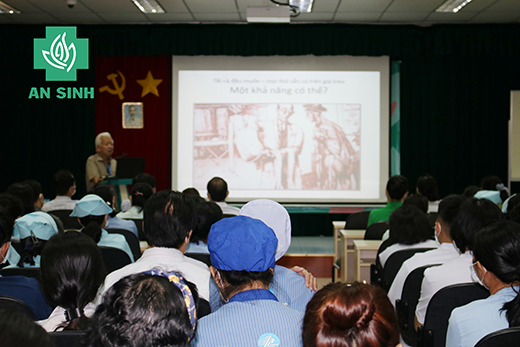 Bên cạnh việc chia sẻ lý thuyết, hình ảnh minh họa, GS TSKH Phạm Mạnh Hùng còn kể lại những câu chuyện có thật mà giáo sư đã từng trải qua trong thời gian còn đang công tác trên cương vị là Thứ trưởng Bộ Y tế. Sống động, trực quan, lôi cuốn và mang ý nghĩa giáo dục cao thực sự thu hút sự tập trung chú ý lắng nghe và truyền cảm hứng cho tất cả những ai có mặt trong buổi chiều ngày hôm nay.