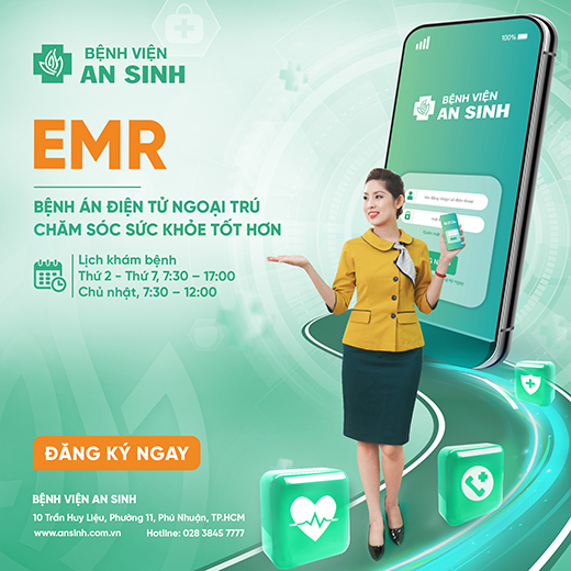 Bệnh viện An Sinh đã triển khai Bệnh án điện tử ngoại trú (EMR) là một trong những nỗ lực nâng tầm chất lượng dịch vụ và phục vụ, mang đến trải nghiệm tiện ích công nghệ khi đi khám bệnh với ưu điểm giúp bạn chủ động quản lý hồ sơ thông tin sức khỏe, tiết kiệm thời gian và chi phí khám chữa bệnh.