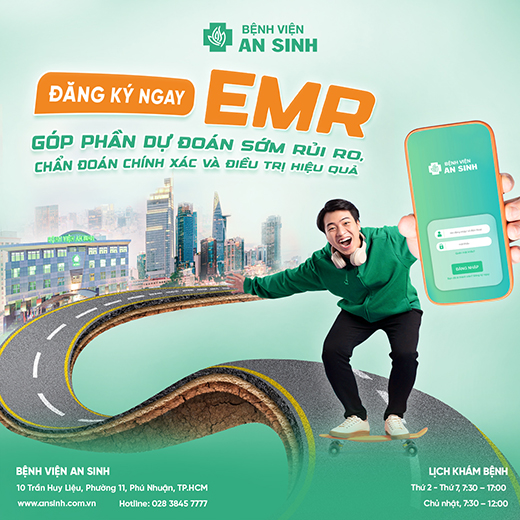 Bệnh viện An Sinh đã triển khai Bệnh án điện tử ngoại trú (EMR) là một trong những nỗ lực nâng tầm chất lượng dịch vụ và phục vụ, mang đến trải nghiệm tiện ích công nghệ khi đi khám bệnh với ưu điểm giúp bạn chủ động quản lý hồ sơ thông tin sức khỏe, tiết kiệm thời gian và chi phí khám chữa bệnh.