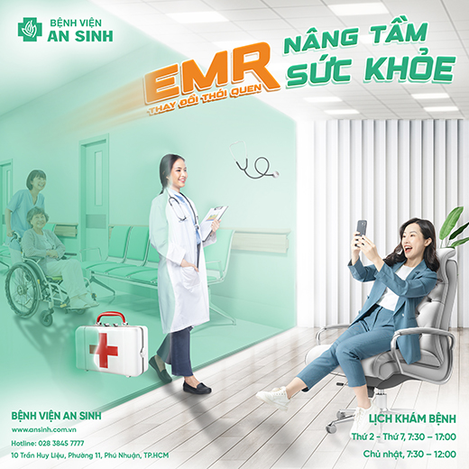 Bệnh viện An Sinh đã triển khai Bệnh án điện tử ngoại trú (EMR) là một trong những nỗ lực nâng tầm chất lượng dịch vụ và phục vụ, mang đến trải nghiệm tiện ích công nghệ khi đi khám bệnh với ưu điểm giúp bạn chủ động quản lý hồ sơ thông tin sức khỏe, tiết kiệm thời gian và chi phí khám chữa bệnh.