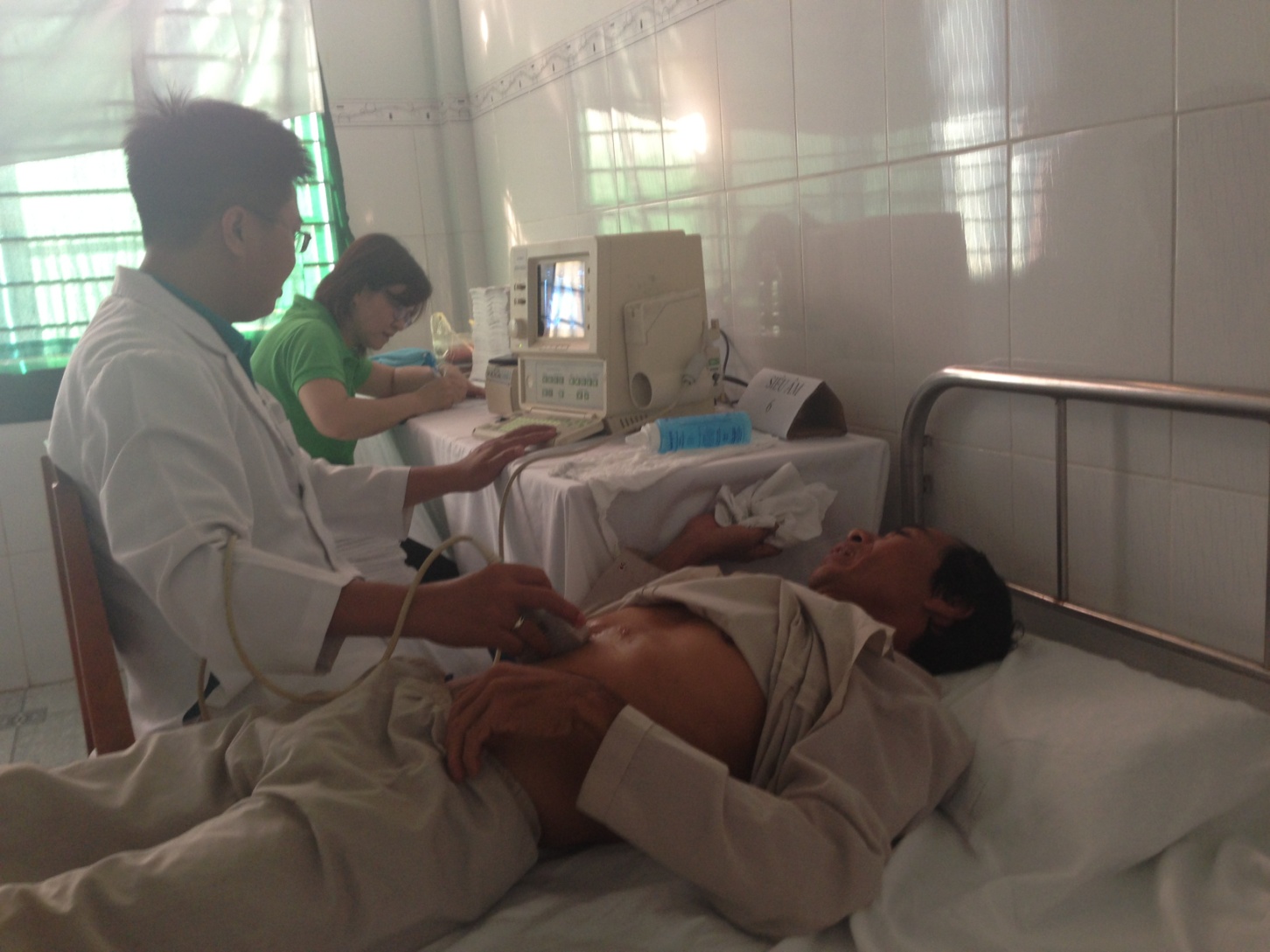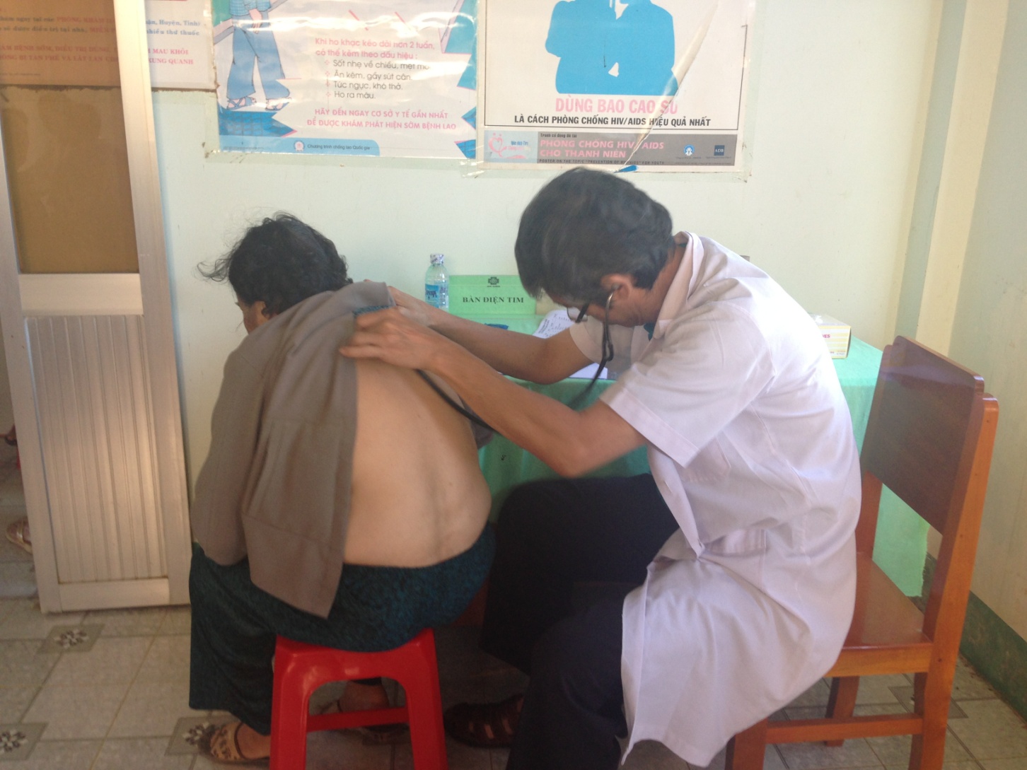 Bà con được khám, tư vấn sức khỏe, được đo điện tim và siêu âm phát hiện bệnh.