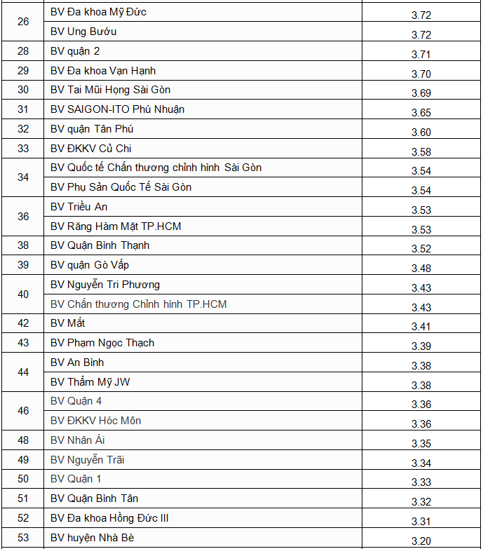Tổng số bệnh viện được Sở Y tế đánh giá chất lượng là 102 bệnh viện, bao gồm 30 bệnh viện thành phố; 23 bệnh viện quận, huyện; 47 bệnh viện tư nhân. Riêng 2 bệnh viện Y học cổ truyền và Viện Y dược học dân tộc đăng ký đánh giá bằng hình thức kiểm tra chéo giữa các bệnh viện chuyên khoa y học cổ truyền của các tỉnh; bệnh viện Quận 3 xin được không đánh giá chất lượng vì năm 2018 bệnh viện tạm di dời để xây dựng và củng cố lại hoạt động bệnh viện. Không còn bệnh viện ở mức chất lượng kém và 12 bệnh viện đạt mức chất lượng tốt là điều đáng ghi nhận của năm 2018.