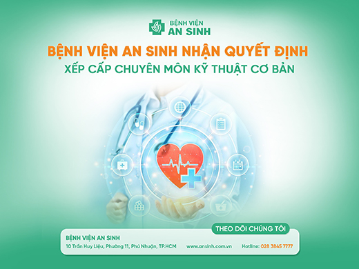 Qu Bệnh viện An Sinh vui mừng nhận được quyết định xét cấp chuyên môn từ Sở Y tế TP. HCM. Để nhận được quyết định này, Bệnh viện An Sinh phải chứng minh được chất lượng dịch vụ khám bệnh, chữa bệnh, đáp ứng đủ điều kiện về cơ sơ hạ tầng tốt, đội ngũ nhân viên y tế có trình độ năng lực chuyên môn, luôn cập nhật kiến thức và kỹ năng mới nhất trong lĩnh vực y học