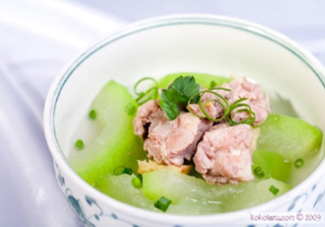 Canh vịt trắng, bí xanh, phục thần: vịt trắng 1 con, bí xanh 500g, phục thần 30g, mạch môn 30g. Vịt mổ bỏ ruột làm sạch, chặt miếng cho vào nồi cùng túi vải đựng phục thần, mạch môn, nước, đun sôi một lúc, cho tiếp bí xanh thái miếng vào, đun đến khi thịt, bí chín nhừ nêm vị là được. Ngày ăn 2 - 3 lần. Công hiệu: bổ âm, an thần, thanh nhiệt, ninh tâm, chữa mất ngủ, thần kinh suy nhược.