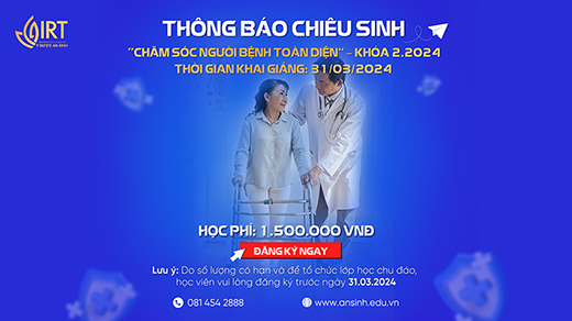 Viện Nghiên cứu và Đào tạo y dược An Sinh xin trân trọng thông báo tới Lãnh đạo quý Bệnh viện/ Trung tâm/ Phòng khám xem xét và cử cán bộ, nhân viên đủ tiêu chuẩn và có nhu cầu để tham dự khóa đào tạo “Chăm sóc người bệnh toàn diện” - Khóa 2.2024 với những nội dung như sau: