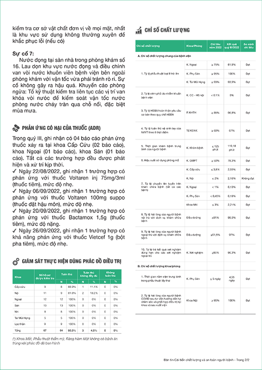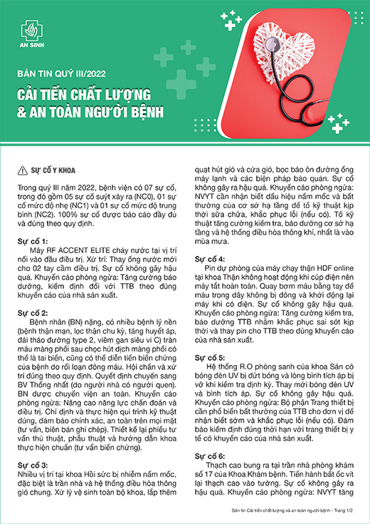 BẢN TIN CẢI TIẾN CHẤT LƯỢNG VÀ AN TOÀN NGƯỜI BỆNH QUÝ III NĂM 2022