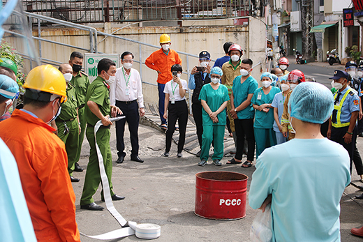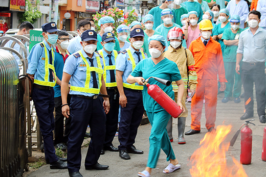 Một số hình ảnh của buổi tập huấn phòng cháy và diễn tập chữa cháy, cứu hộ cứu nạn năm 2021 tại Bệnh viện An Sinh: