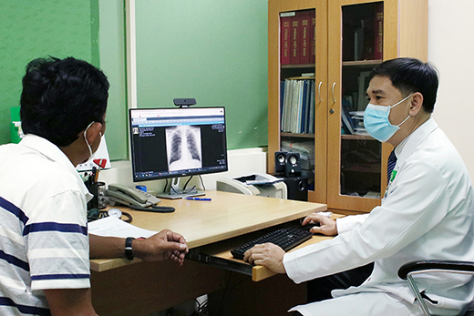 Từ các thông tin trên bệnh án điện tử, TS.BS Nguyễn Thanh Phong đang tư vấn cho người bệnh.
