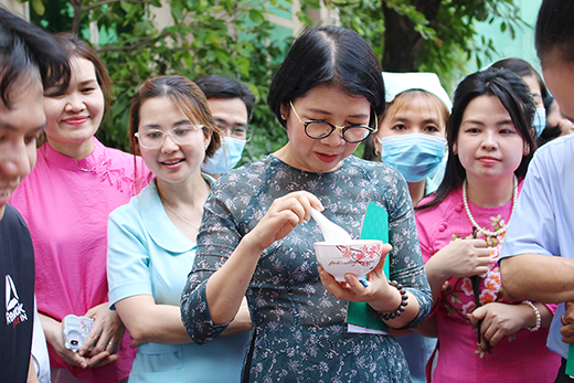 Chúng tôi vui mừng khi có sự hiện diện của chị Nguyễn Thị Kiều Vi, Phó Chủ tịch Liên đoàn lao động Quận Phú Nhuận, một vị khách mời đặc biệt và là thành viên Ban Giám khảo hội thi nấu ăn năm nay.