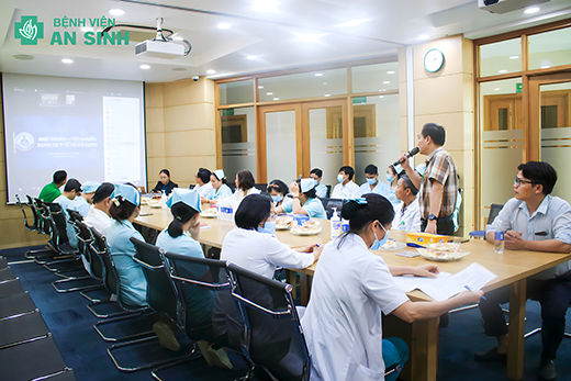 Một số hình ảnh được chúng tôi ghi nhận trong buổi tập huấn kiểm soát nhiễm khuẩn “Áp dụng phòng ngừa chuẩn trong chăm sóc điều trị” được tổ chức tại Bệnh viện An Sinh.