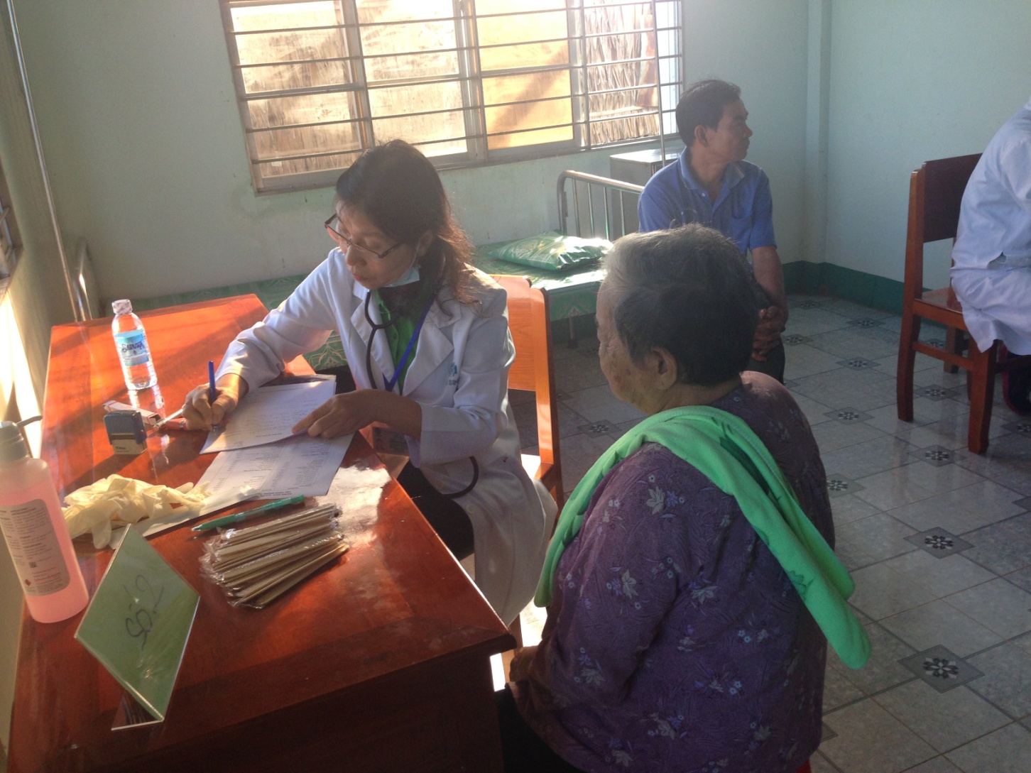 Bà con được khám, tư vấn sức khỏe, được đo điện tim và siêu âm phát hiện bệnh.